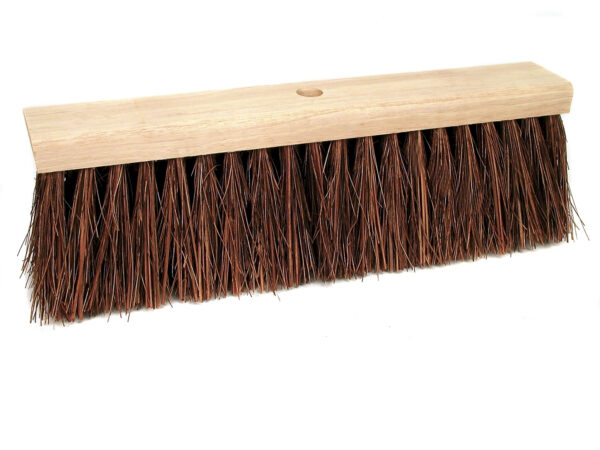 Bezem gevuld met lange natuurvezel, voor het verwijderen van droog, grof vuil op ruwe oppervlakken.